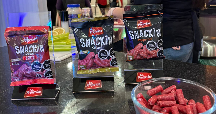 Este año, CIAL mostró su presencia en la categoría de snacks a través de su marca La Preferida, presentando uno de sus lanzamientos más recientes: Snackin. Esta línea incluye variedades de sabores como salame, pepperoni y salame spicy, pensada como una alternativa práctica y sabrosa para disfrutar en medio de una jornada ajetreada o simplemente para darse un gusto. Los palitos de salame están disponibles en distintos formatos, entre ellos sticks individuales de 18 gramos y bolsitas de 50 gramos con láminas de tres centímetros.